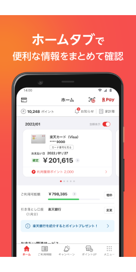 楽天カードアプリをご利用いただくためには、楽天カード会員であり、楽天カード会員専用のオンラインサービスである楽天e-NAVIに登録されている方が利用可能です。二次パスワードを設定しているメンバーは、アプリへのログイン時にも二次パスワードが必要です。利用日は参加店により実際の利用日と異なる場合があります。分割払い、ボーナス一括払い、ボーナス一部払いには二回目以降の支払いができません。アプリのロック解除パスコードを忘れた場合は、アプリを削除して再インストールしてください。アプリを削除すると、家計簿の詳細が全て削除されます。 💳📲 また、楽天カードアプリの公式ページはこちら:http://r10.to/hGtlOg アプリ内の「設定」→「アプリ情報」→「使い方」からも確認できます。